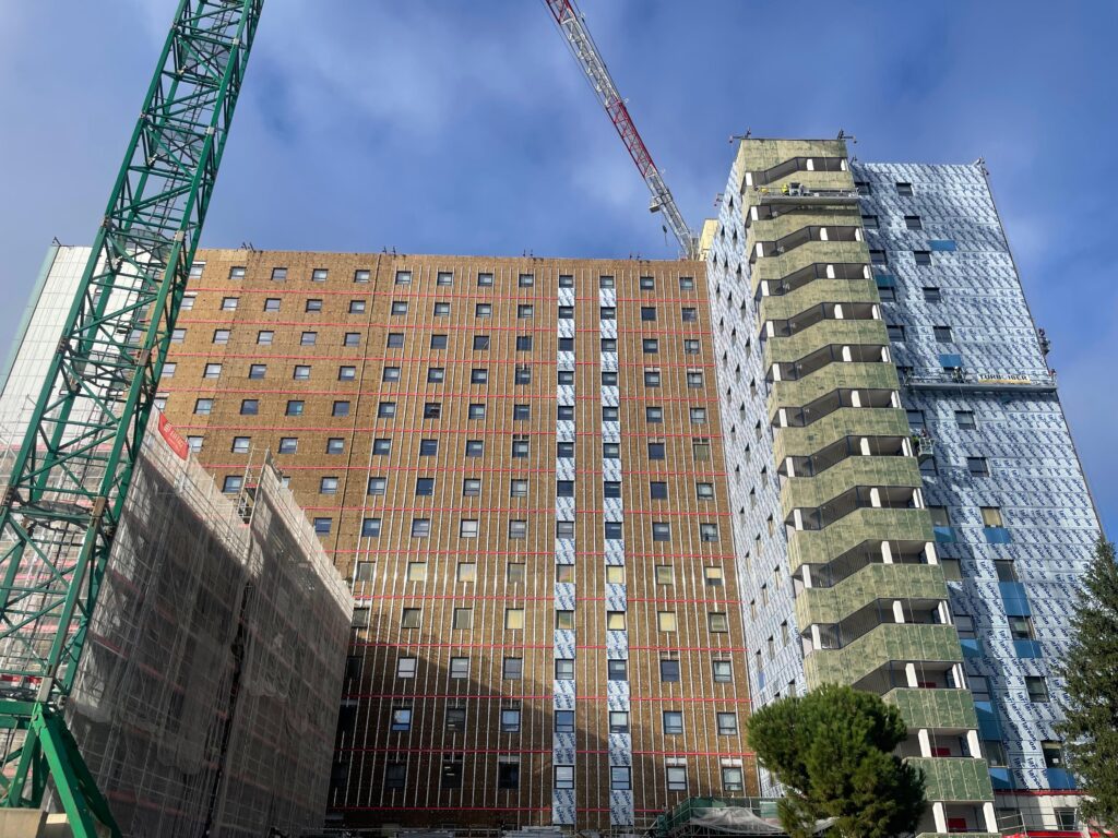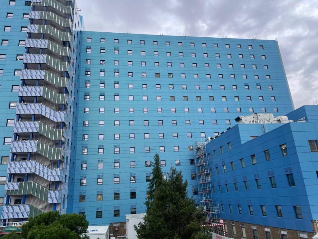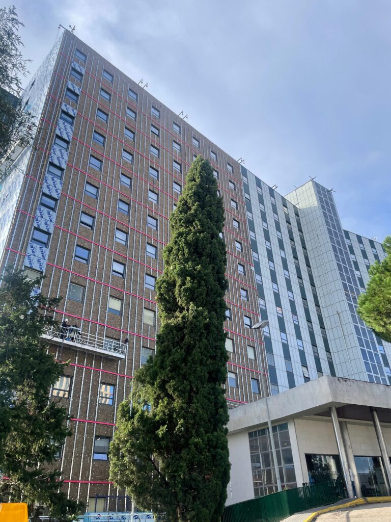 Eiffage Energía Sistemas ejecuta las obras de rehabilitación de las fachadas del Hospital Universitario Ramón y Cajal, en Madrid, promovidas por la Consejería de Sanidad de la Comunidad de Madrid a través del Servicio Madrileño de Salud (SERMAS).