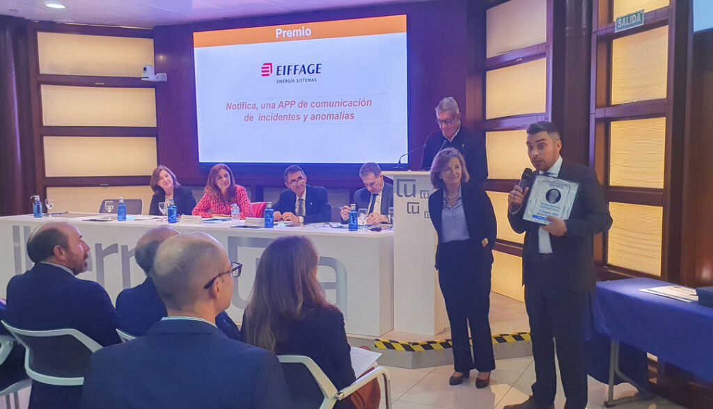 El proyecto “Notifica”, la aplicación desarrollada por Eiffage Energía Sistemas para la comunicación ágil y eficaz de incidentes y anomalías, ha sido reconocido por Ibermutua en la 3ª Edición de los Premios de Prevención de Riesgos Laborales “Eladio González Malmierca”, que distinguen las buenas prácticas en Seguridad y Salud en el Trabajo.